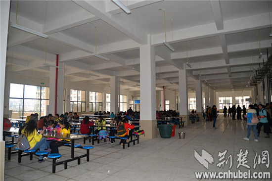 图为:华中师大来凤附中学生正在新校区食堂用餐