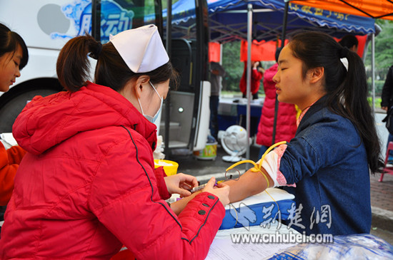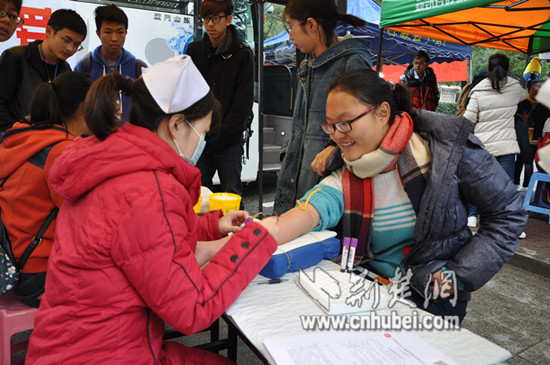 荆楚网消息(记者余梅)11月19日,湖北省红十字会的献血车开进中南财经政法大学首义校区,44名大学生同日加入中华骨髓库湖北分库,女生占2/3。据了解,湖北省大学生已占入库志愿者三成。