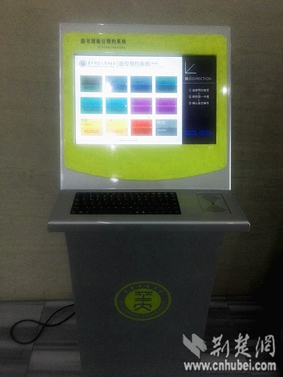 在华中师范大学图书馆,每个楼层都有一到两台座位预约终端机