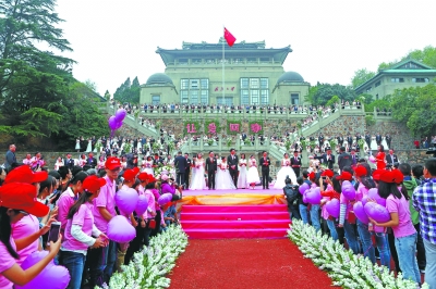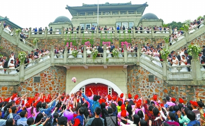 昨天,123对武汉大学校友重回母校,在珞珈山水的见证下,携手走进婚姻的殿堂。