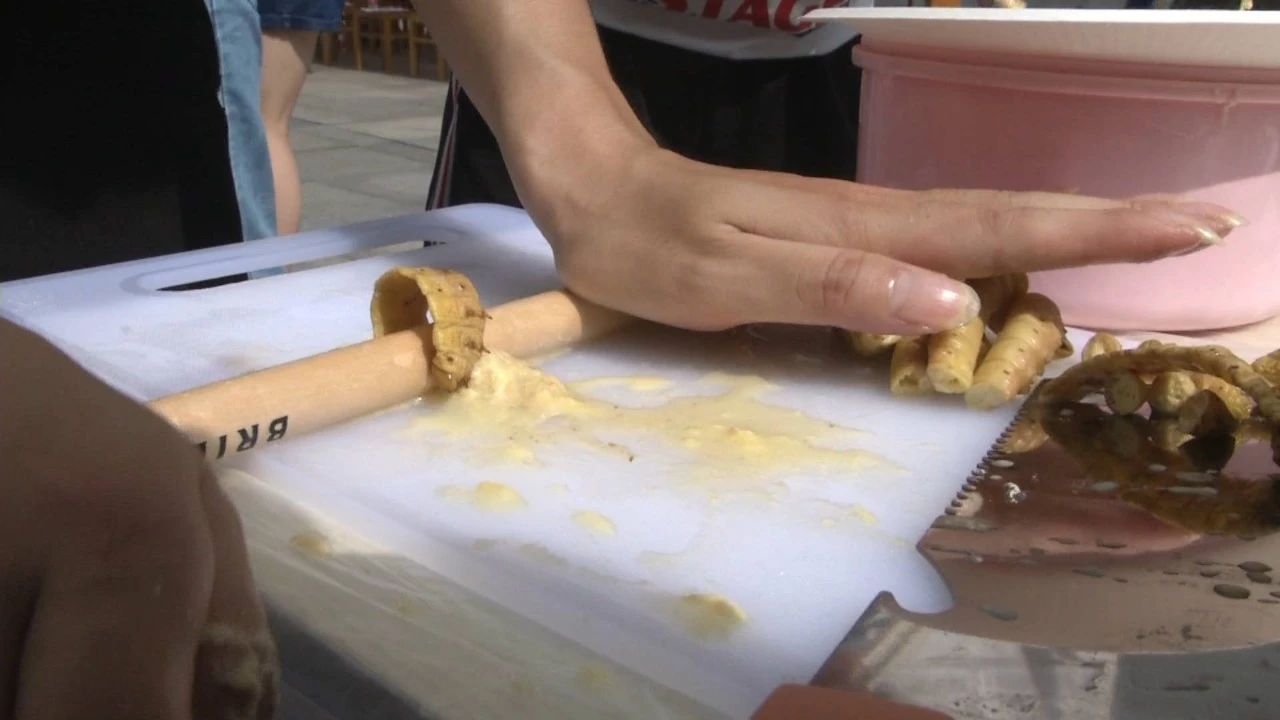 以蝗虫为主要食材,蝗虫油炸后沾上配好的佐料,摆到设计好的狮子造型盘子里,成为了最受欢迎的菜肴之一。虽然受欢迎,看到整只蝗虫摆在盘子里,有些市民难免不想动筷子。