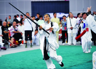图为:刊博会现场,杂志社精彩的武术表演。