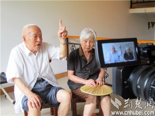 侯润涛和李开芬夫妇二人向记者讲述抗战故事
