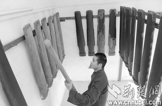 “古书上说最好的琴是‘上桐下梓’,即琴面是桐木,底板用梓木。这两种木材很少有,所以大部分的古琴都是用杉木做的。很多木材都是来自拆迁的老房子,木质十分干燥,回音效果好,是制琴的绝佳材料。最初都是我自己找,现在有固定的供应商。”阮延俊说。