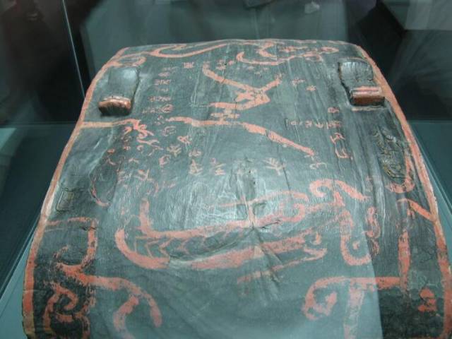 彩绘二十八宿图衣箱由盖、器身组成,器身为长方体,盖顶拱起。器内髹红漆,器表髹黑漆,并用红漆书写二十八宿名称等文字及其它花纹。盖面正中朱书一篆文的大“斗”字。这件衣箱是我国迄今发现记有二十八宿全部名称、并以之与北斗和四象相配的最早的天文实物资料,说明我国至少在战国早期就已形成二十八宿体系。