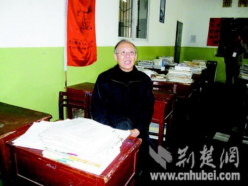 图为:昨日,罗阳的物理老师许定璜坐在他当年常坐的位置,追忆英模。 (记者 程凤 江卉 摄)