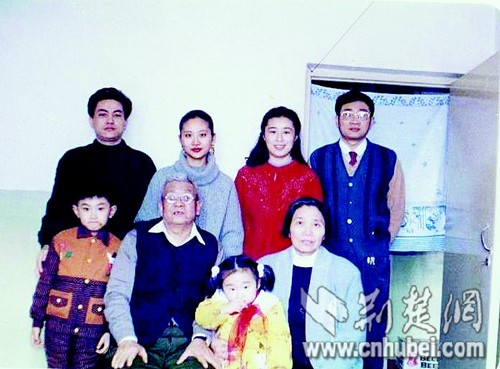 图为:罗阳家庭合影,1994年摄于沈阳。图中前排为罗阳父母及罗阳女儿,后排右一右二为罗阳夫妇,其他为罗阳姐姐一家。 (张跃 提供)