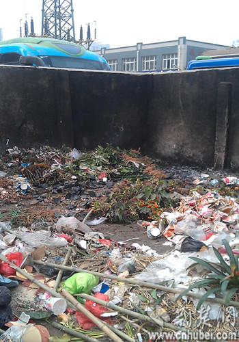 记者在该“垃圾池”附近观察到,周边有铁机花卉批发大市场、铁机菜市场和大小各类餐馆和早点摊铺。记者从附近商铺店主及城管部门得到一致答案,问题出在花卉市场和各类餐馆。