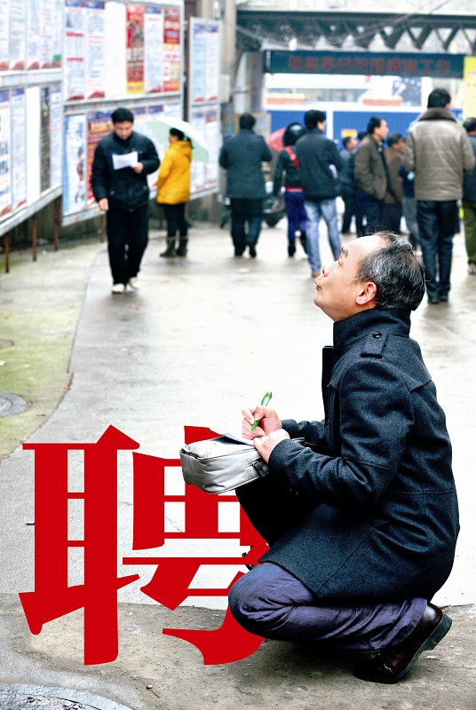 昨日,起点人力资源市场,一名求职者认真抄写招聘信息 (记者万多摄)