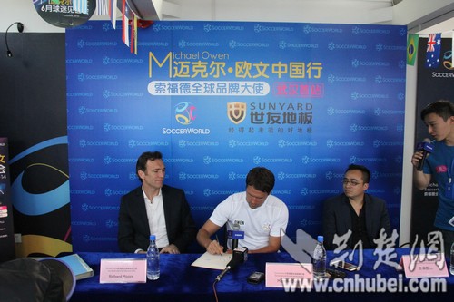 荆楚网消息(记者艾凌璐 周喆宇 葛宇 实习生李亚林)6月4日,英格兰国际足球巨星迈克尔·欧文(Michael Owen)空降武汉,首次与江城球迷们见面。
