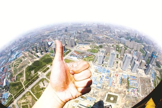 图为:站在武汉中心大厦之巅,建设者为大武汉点赞 楚天都市报记者姚品摄