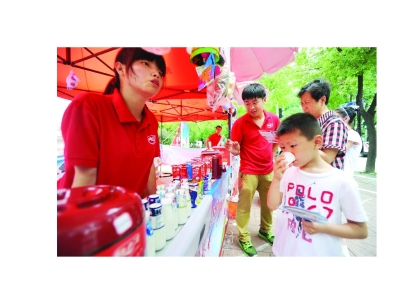近日,百步亭花园社区里,“扬子江”牛奶举办嘉年华活动,吸引居民订购瓶装低温奶。记者 苗剑 摄