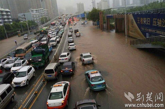 欢乐大道欢乐高架、发展大道华南海鲜门口、解放大道永清街路段积水小车通行缓慢;琴台大道赫山路、新天大道三眼桥、龙阳大道二桥路路段大面积积水已断交。