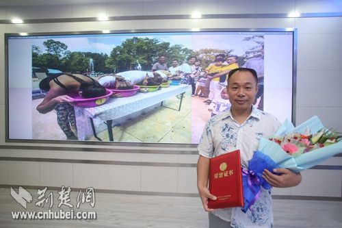 获奖作者胡伟民(右)