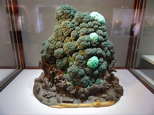 在精品厅的玻璃展柜中,已经有部分展品就位,奇石“国宝熊猫”就位于一处转角的玻璃柜中,它由两块大小不一的奇石组成,形态憨态可掬,就像一对母子熊猫。>>>详细