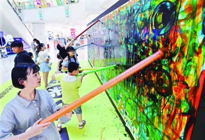 昨日在武昌街道口一购物中心,不少市民手持大画笔,在巨型涂鸦板上肆意挥洒,多彩颜料汇聚成丰富的渐变墙。一年轻人兴奋地告诉长江日报记者,在小长假偶遇这样的免费“减压”墙,“蛮好玩、蛮过瘾”。