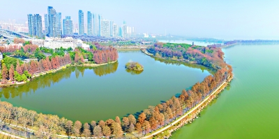 近日,东湖绿道主体工程完工,项目进入最后冲刺阶段,本报记者前往探访,提前感受这条藏身大美东湖的世界级绿道。无人机从上空俯拍,碧波之上,秋色正浓的东湖绿道串成一线 记者胡九思 航拍