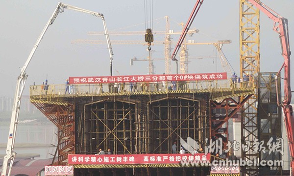 湖北日报网讯(全媒体记者廖志慧、通讯员邓帆、袁烜) 2017年6月8日凌晨1:30,经过将近19个小时的连续作业,由中铁大桥局七公司施工的武汉青山长江大桥北岸跨堤引桥首个上部结构施工操作平台混凝土浇筑完成,标志着该桥北岸跨堤引桥全面进入上部结构施工阶段。