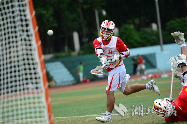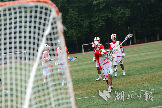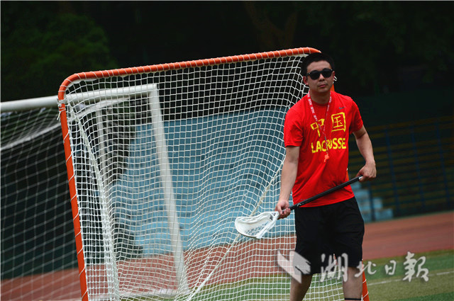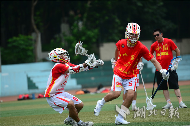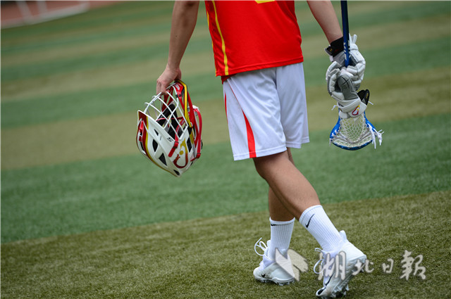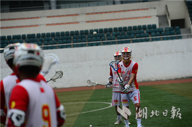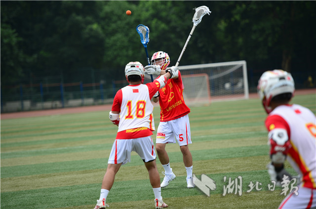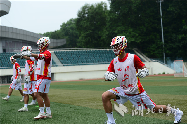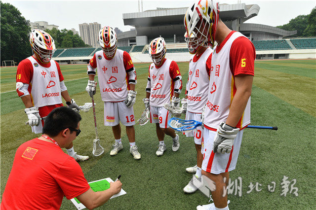 7月4日上午,华中师范大学足球场上,一群正在集训的运动员引起路人围观。他们身披“中国”球衣,戴头盔手持曲棍在场上奔跑,对抗中不断击打小球入网。