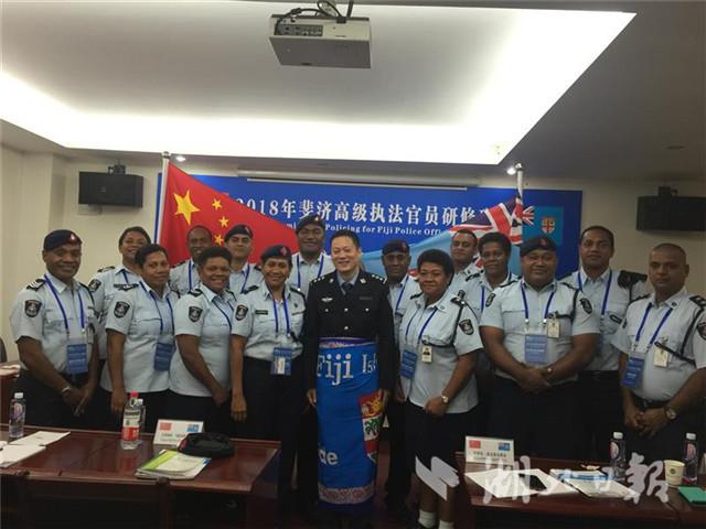 此次研修班由公安部主办、省公安厅协办,斐济一共来了15名高级执法官员。15天培训课程中,有10堂警务讲座、3场现场观摩、2场教学交流。研修班班长伊萨塔·多姆克鲁拿到结业证后表示,课程让她进一步加深了对平安中国、一带一路建设、人类命运共同体等理念的理解,她将把学到的反恐、打击网络犯罪、电信诈骗等知识带回国,当好两国交流合作的桥梁。