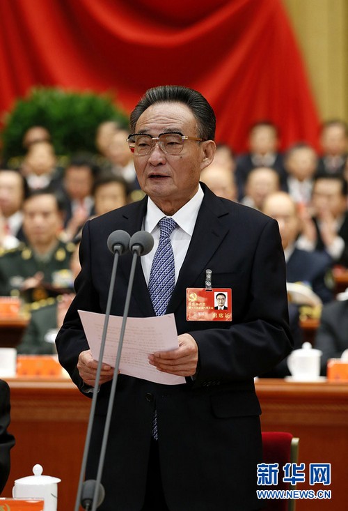 11月8日,中国共产党第十八次全国代表大会在北京人民大会堂隆重开幕。 吴邦国同志主持大会。新华社记者 鞠鹏 摄