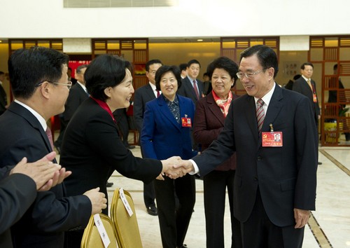 11月8日,贺国强同志参加党的十八大福建代表团讨论。新华社记者 黄敬文 摄