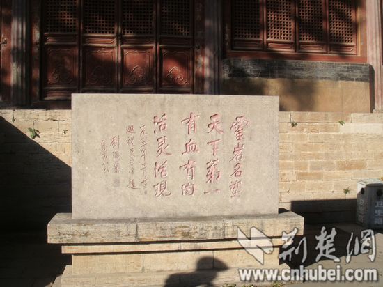 刘海粟题辞“灵岩名塑,天下第一,有血有肉,活灵活现”。 荆楚网记者 李克伟摄