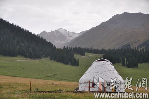 那拉提草原上,哈萨克族人的毡房