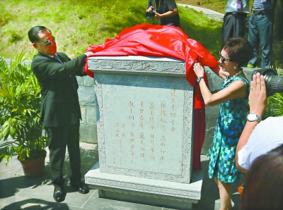 中国国民党荣誉主席连战和夫人在祭祖仪式上揭碑 记者李葳 摄