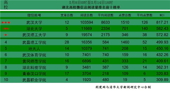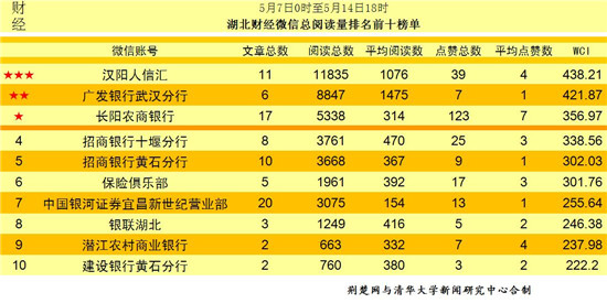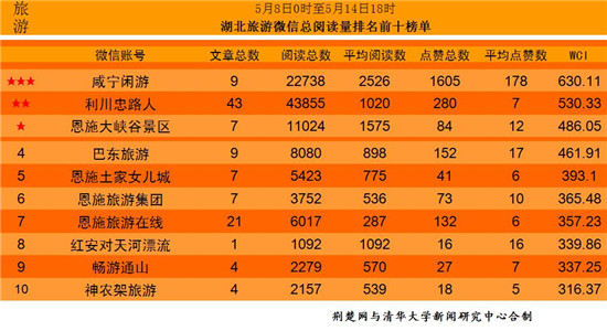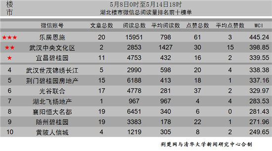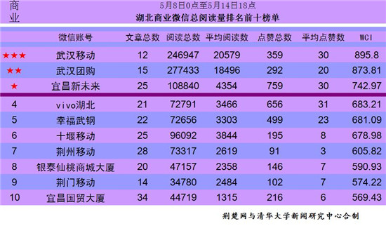 荆楚网消息(记者裴斌 袁筱)5月16日,由荆楚网联合清华大学新闻研究中心制作的《湖北微信行业公众号影响力排行榜》第68期发布。该榜单囊括高校、楼市、旅游、商业、财经五大类别,以一周为时间节点,对湖北省内五大行业的微信推广影响力和市场认可程度进行第三方客观评价。未来还将发布更多行业排行榜,敬请期待!