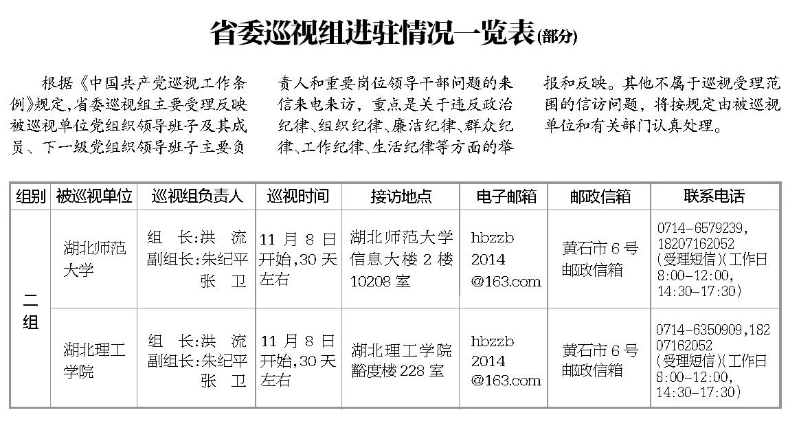 湖北日报讯 (记者杨宏斌、通讯员王婧)根据省委统一部署,8日,省委第二巡视组分别进驻湖北师范大学、湖北理工学院开展巡视,并召开巡视工作动员会。