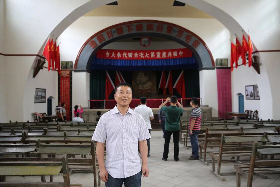 作者杨飞于延安中共七大会址