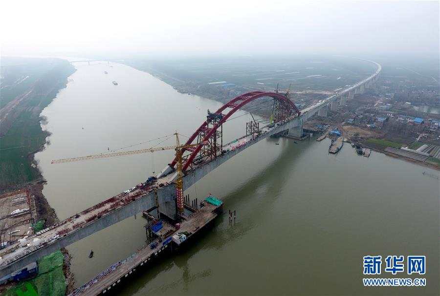 历时7小时,2月28日3时28分,位于安徽寿县境内的商合杭高铁跨淮河特大桥钢管拱合龙,为商合杭高铁合肥以北段年内建成通车奠定基础。