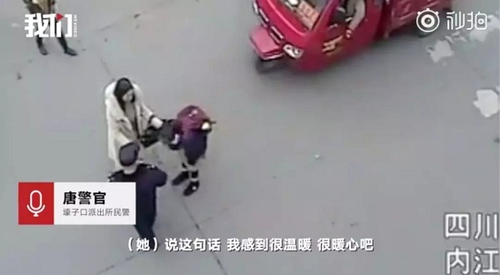 当小姑娘把零食递给这位消防员的时候,相信他心里满溢着温暖和感动。同样,浙江江山和四川内江的两名民警也体会过这样的温暖。