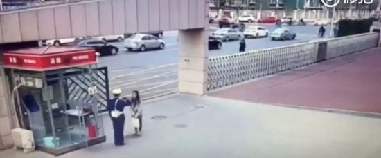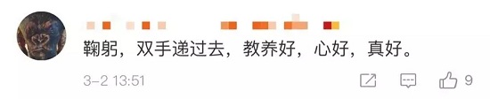 2月26日,消防员站岗时,一位小姑娘向消防员鞠了一躬,并往消防员手里塞了一个满装零食的袋子。消防员向她表示感谢,并把零食还了回去。