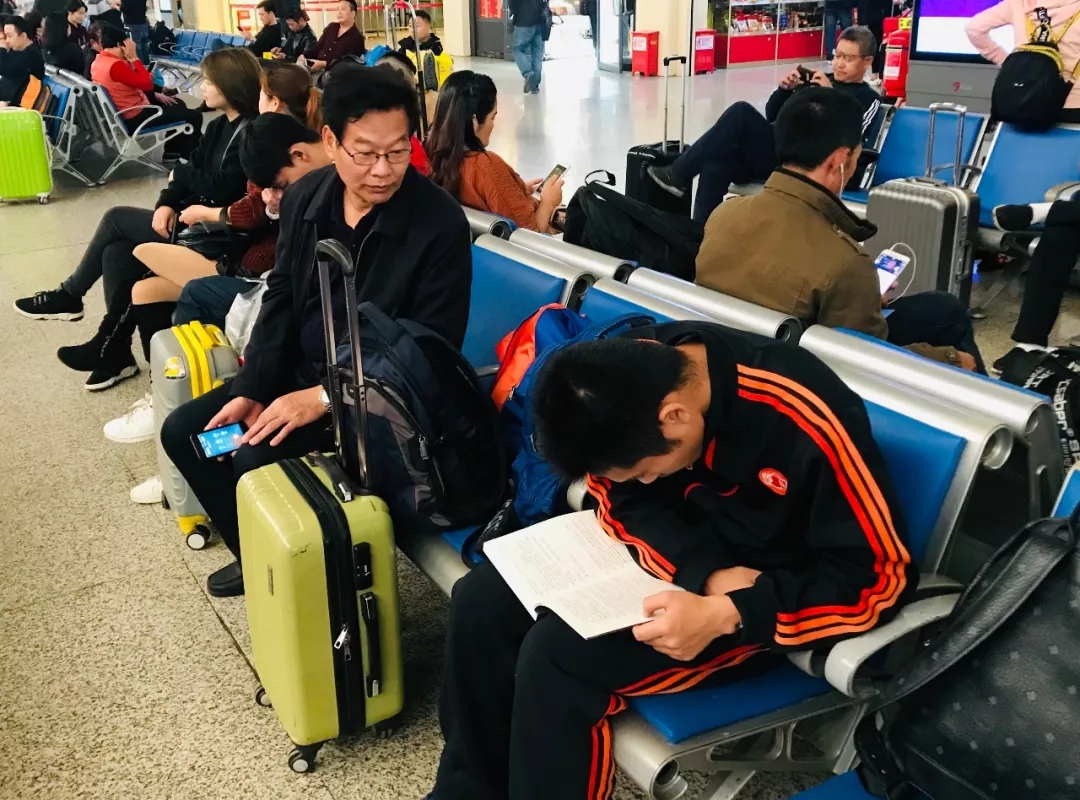 参加清华丘成桐英才班的选拔考试途中,在火车站、火车上学习
