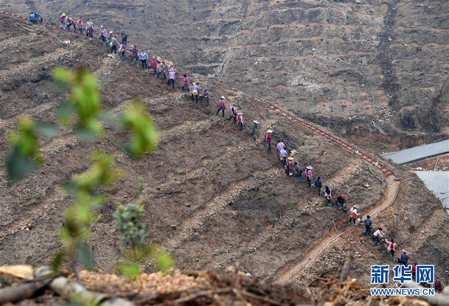 当日,广西三江侗族自治县丹洲古篮千亩油茶基地一片忙碌,当地群众正抢抓农时种植油茶。据介绍,三江侗族自治县现有油茶林61.7万亩,覆盖全县15个乡镇的86个贫困村。目前,全县正大力推进油茶品种改良工作,助力当地群众脱贫致富。 新华社记者 陆波岸 摄