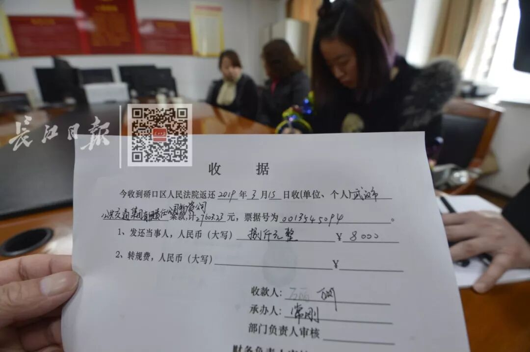 25日上午10点,赵璇带着父亲赵先元如约来到武汉市硚口区人民法院,通过执行局,将10.5万元欠款分别还给3名债权人。