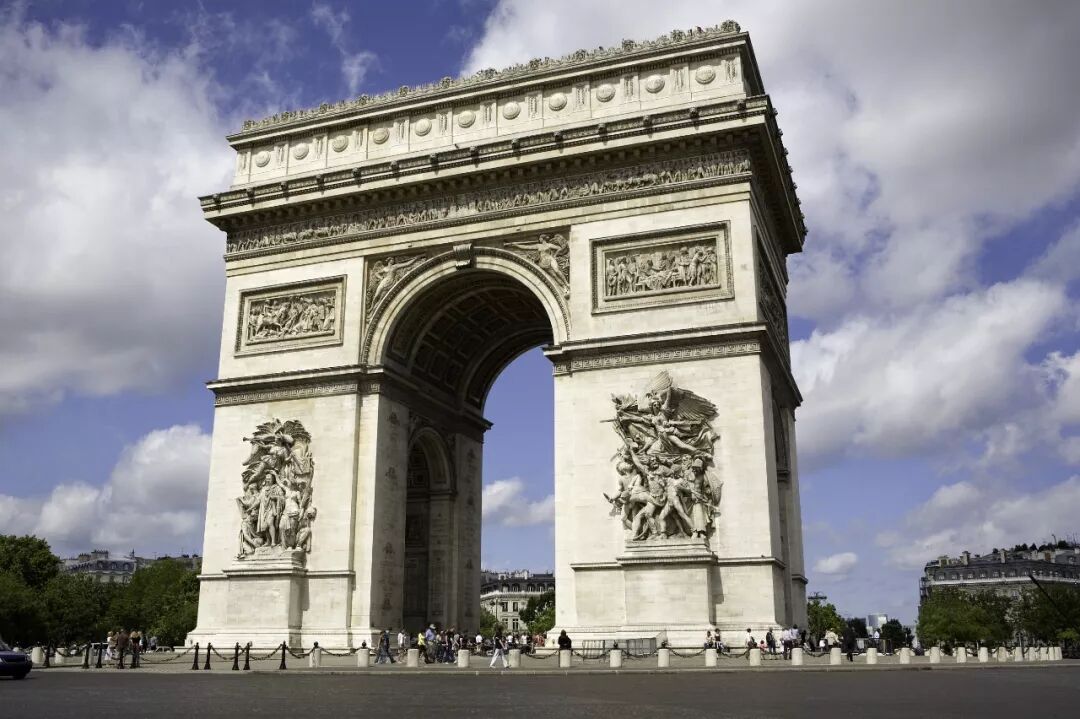 △巴黎凯旋门,巴黎的地标建筑之一,是现今世界上最大的一座圆拱门,象征着法国的历史与文化。