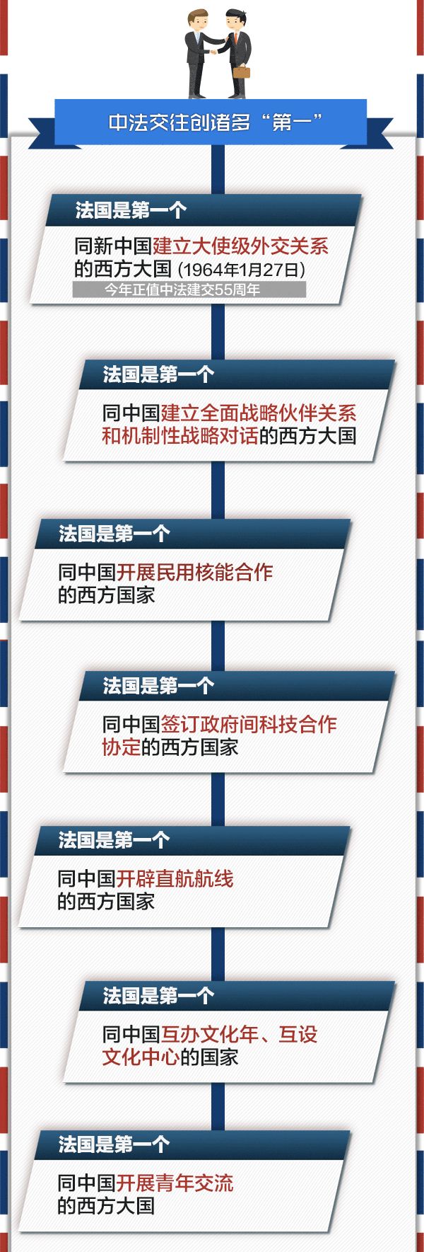 应法兰西共和国总统马克龙邀请,中国国家主席习近平对法国进行国事访问。今年正值中法建交55周年。习近平主席时隔五年再次对法国进行国事访问,对两国关系具有特殊重要意义。