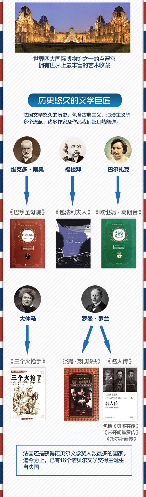 △罗浮宫,位居世界五大博物馆之首。曾居住过50位法国国王和王后,以收藏丰富的古典绘画和雕刻而闻名于世。馆内三宝:断臂维纳斯雕像、《蒙娜丽莎》油画和胜利女神石雕。
