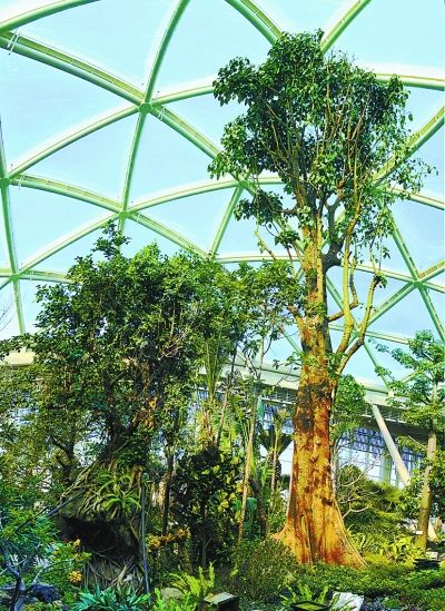 如果在植物温室行走,一定会发现在场馆中央的那棵青果榕,它是全场最高、年纪最大的植物,被工作人员亲切地称为“老爷爷”。这棵今年近100岁的老榕树来自云南西双版纳,为了让它能提前适应植物温室的气候,在世园会开幕之后向游客展示良好的精神面貌,去年10月,“老爷爷”就被运了过来。“我们可以骄傲地说,现在你看到的‘老爷爷’的每一片叶子,都是在这里长出来的。”贺颖说。