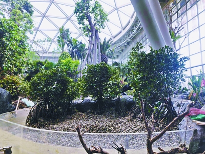 帮助红树林“移民”十分不易,甚至可以用艰难来形容。植物馆温室和景观总负责人贺颖告诉记者,相比植物温室内的其他植物,红树林是较晚入驻场馆的植物,因为它在运输过程中很容易因为气温和环境的突变而受损或死亡,所以需要等天气转暖后才能运输。因此,植物温室内的3处红树林展示区的植物都是上个月才正式“移民”的。