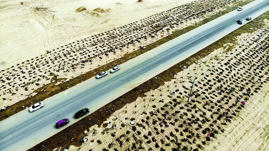 在南疆,长长的人工荒漠林带和治沙网格相结合,护佑着纵贯塔克拉玛干沙漠的公路,以及因选择走沙漠公路而省了数百乃至上千公里路程的旅人。