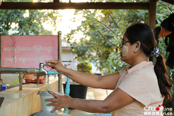 由中缅油气管道项目援建的水塔为当地市民解决用水问题(洪荃诠 摄)