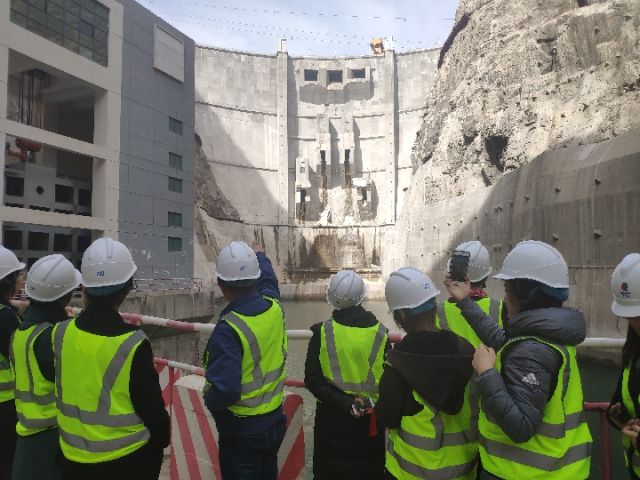科幻作家在拉西瓦水电站的大坝前参观。新华社记者王秀琼摄