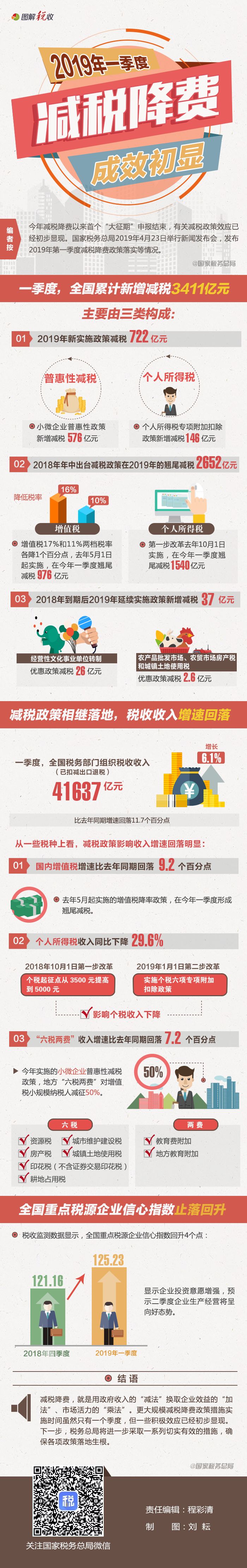 4月23日下午,国家税务总局召开新闻发布会,介绍税务部门落实减税降费政策及优化税收营商环境等方面情况。数据显示,2019年一季度,有关减税政策效应已经初步显现。具体亮点有哪些,戳图了解↓