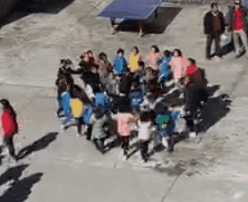 孩子们在操场里跳民族舞