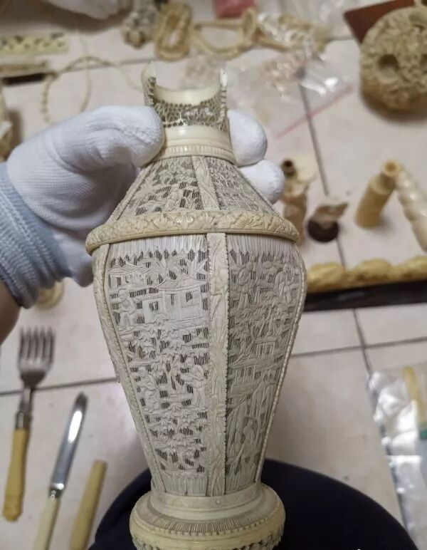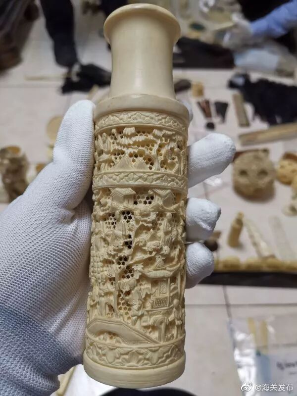 4月1日—30日,广州海关共查获41宗象牙制品进境情事。其中,在旅检渠道查获违规携带象牙制品进境情事34宗,同比增长70%;缴获象牙制品261件,同比增长5.7%;重6953克,同比增长33.2%;在邮递渠道查获7件含象牙制品的进境邮包,查获象牙制餐具、装饰品毛重14.47千克。