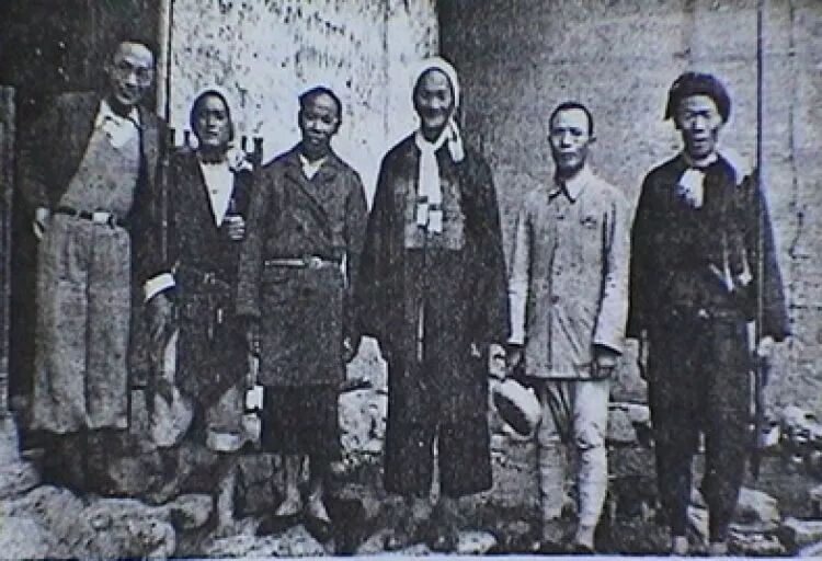 1935年费孝通(左一)在大瑶山与当地群众合影。 新华社资料片